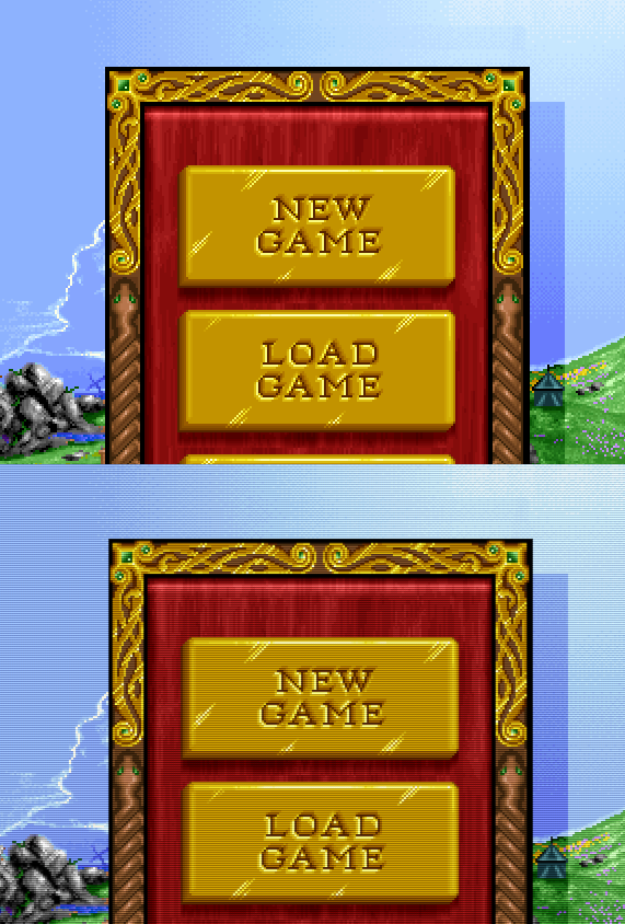 In dieser Auflösung wirkt sich der Scanline-Filter maßgeblich auf Kontrast und gesamtheitlich authentisches Erscheinungsbild aus. Hier mal zum Vergleich zwei Screenshots (auf die Bilder klicken, um sie als Vollbild anzuzeigen):